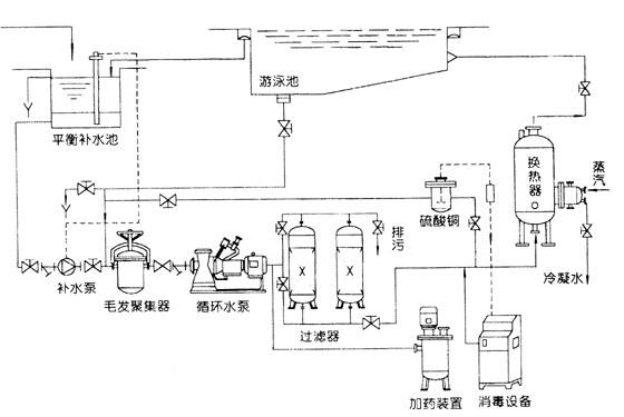 游泳池的循環周期和循環流量是一個問題的兩個方面。循環周期和循環流量的確定,是水處理設計的前提,它決定系統處理能力的大小,總造價的高低,和常年運營費用的多少,因此,它是游泳池水處理設計最重要的數據。